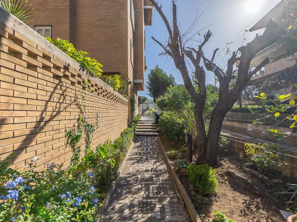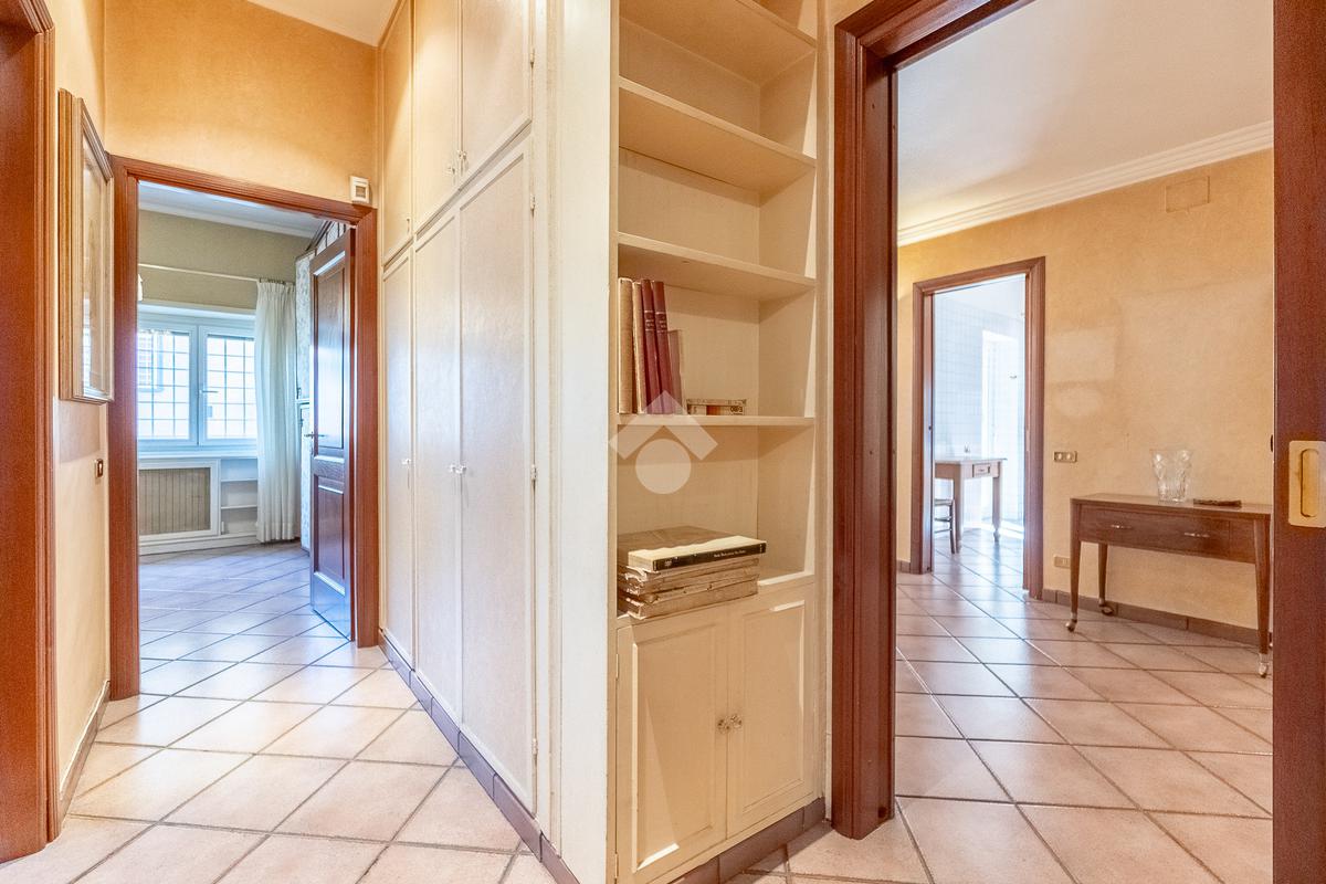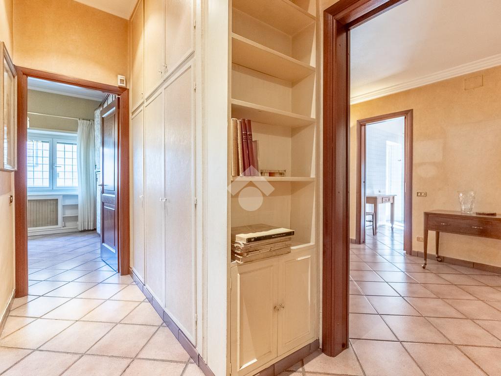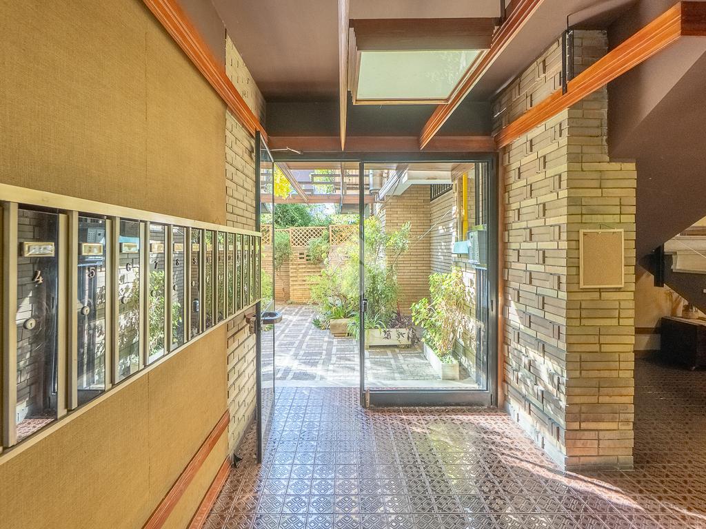 L’appartamento, situato al primo piano con ascensore, si trova all’interno di un condominio in cortina risalente agli anni ’60, dotato di aree verdi condominiali e servizio di portineria.