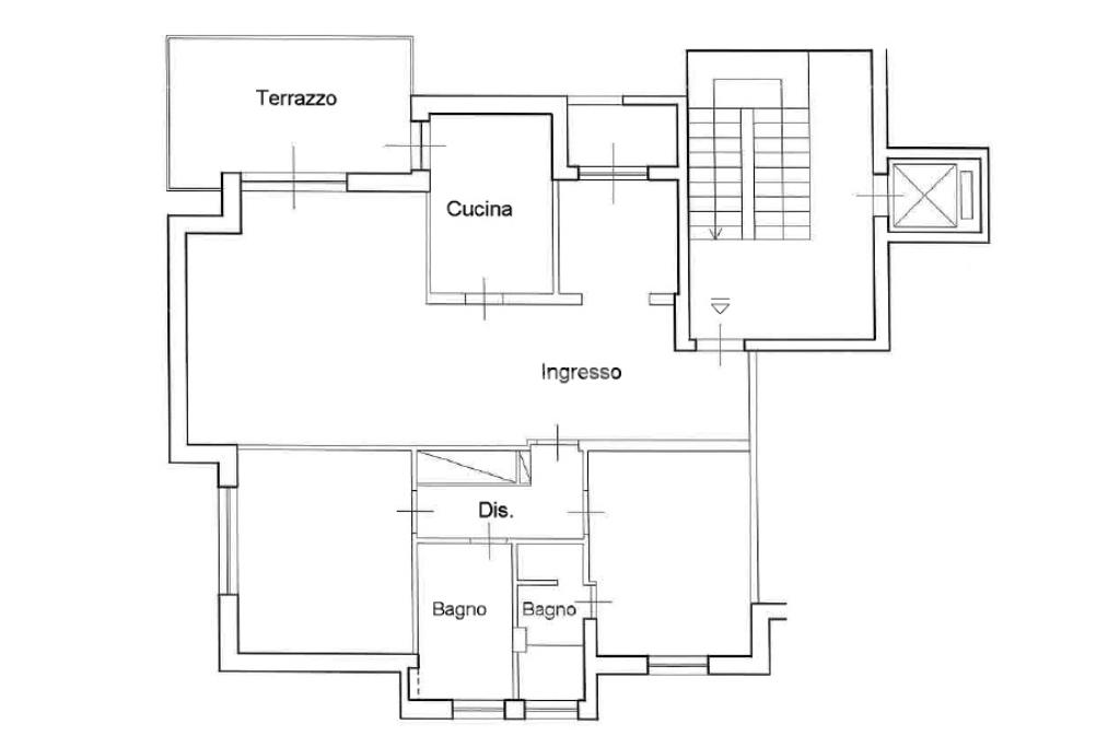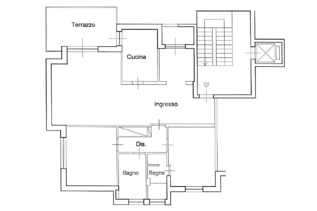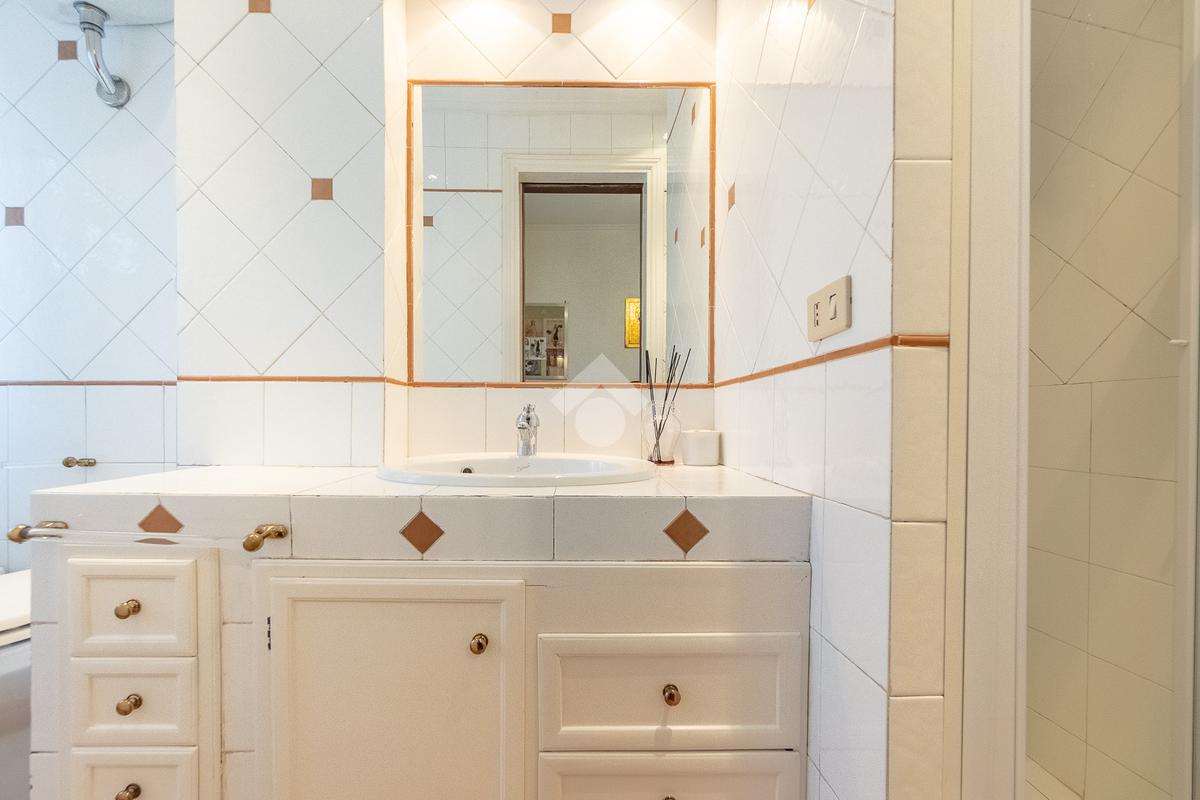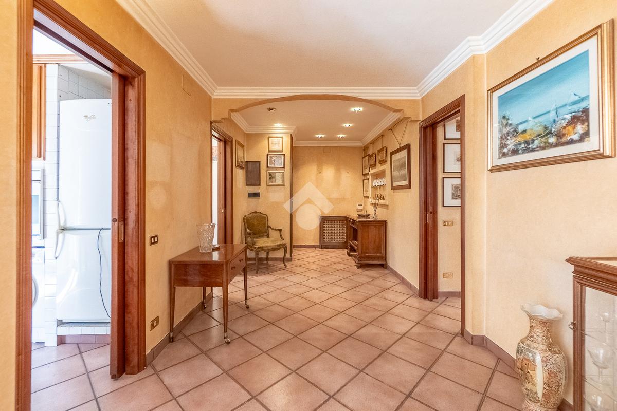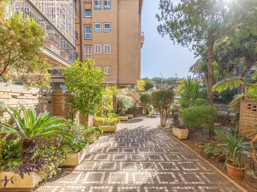 L’appartamento, situato al primo piano con ascensore, si trova all’interno di un condominio in cortina risalente agli anni ’60, dotato di aree verdi condominiali e servizio di portineria.