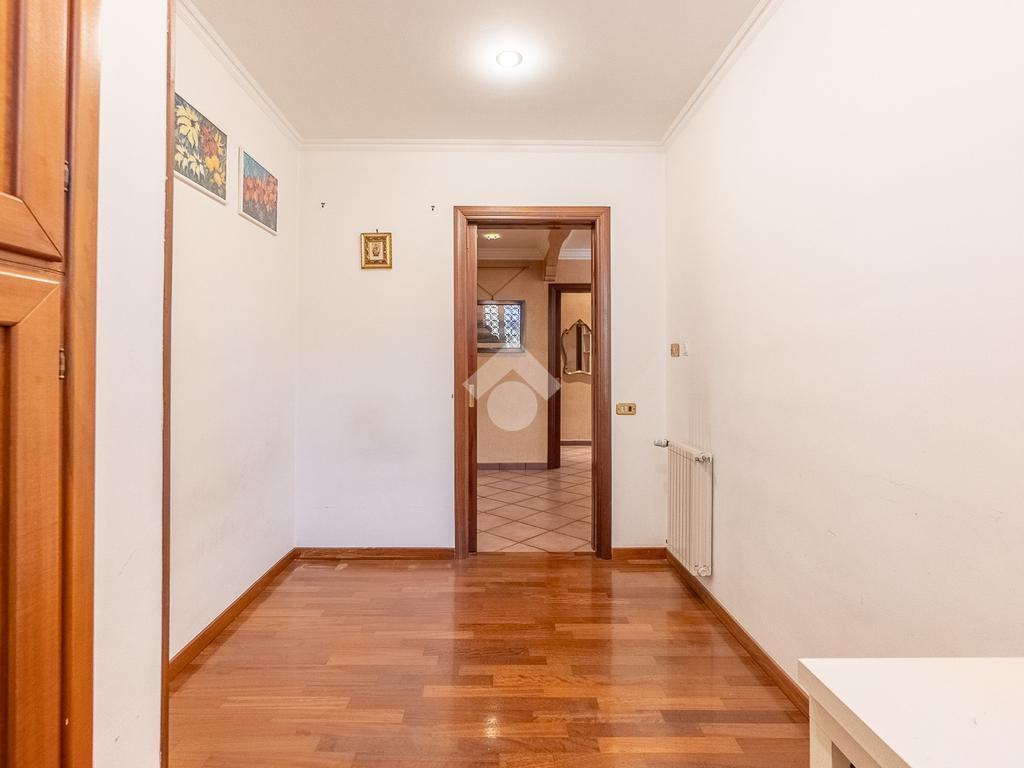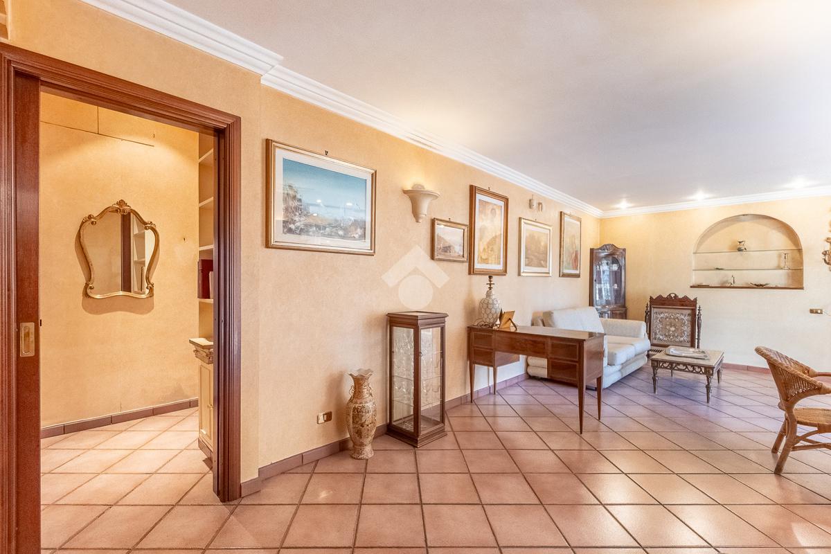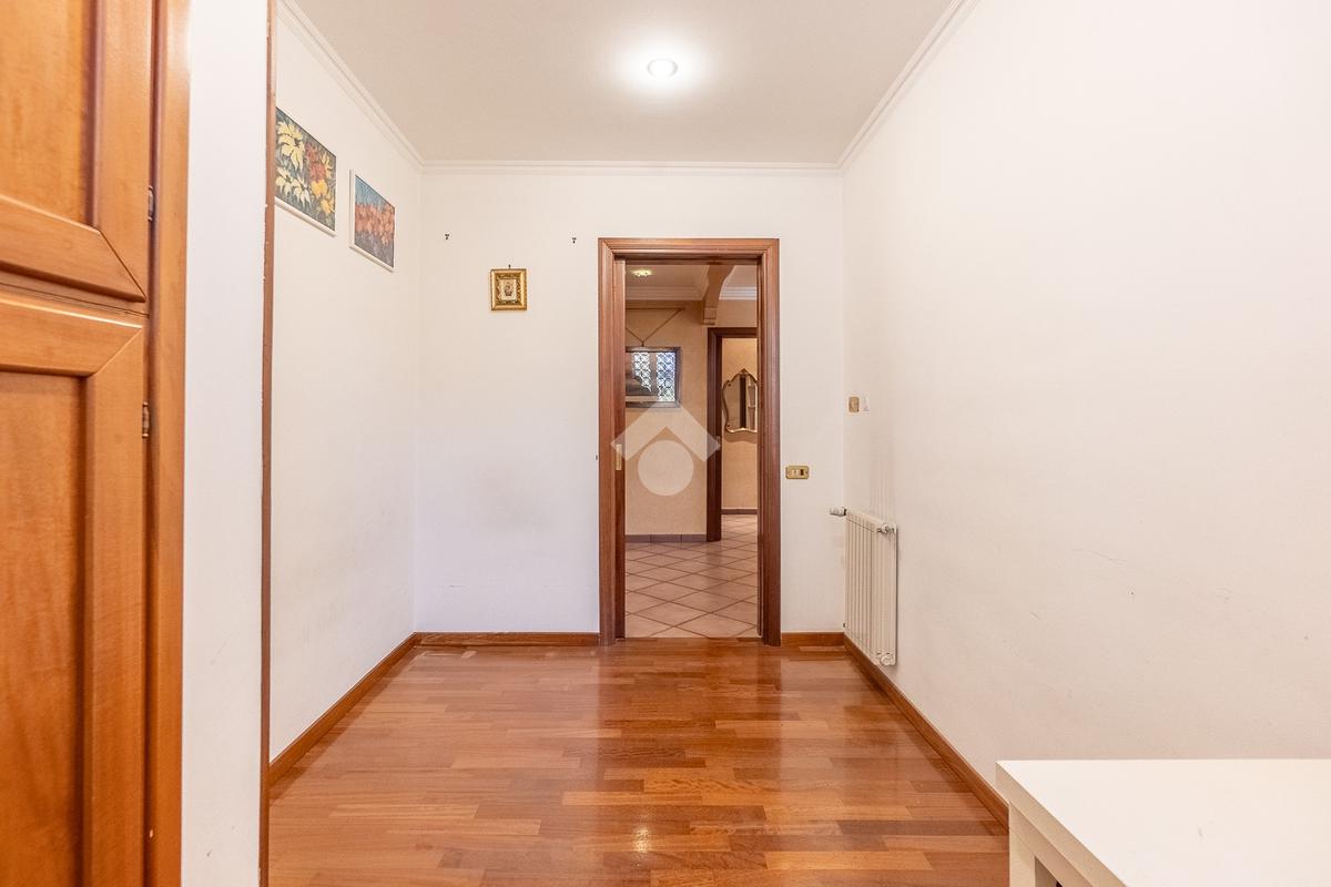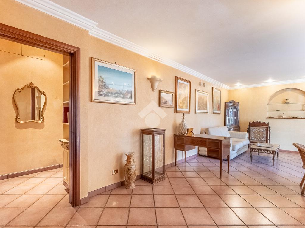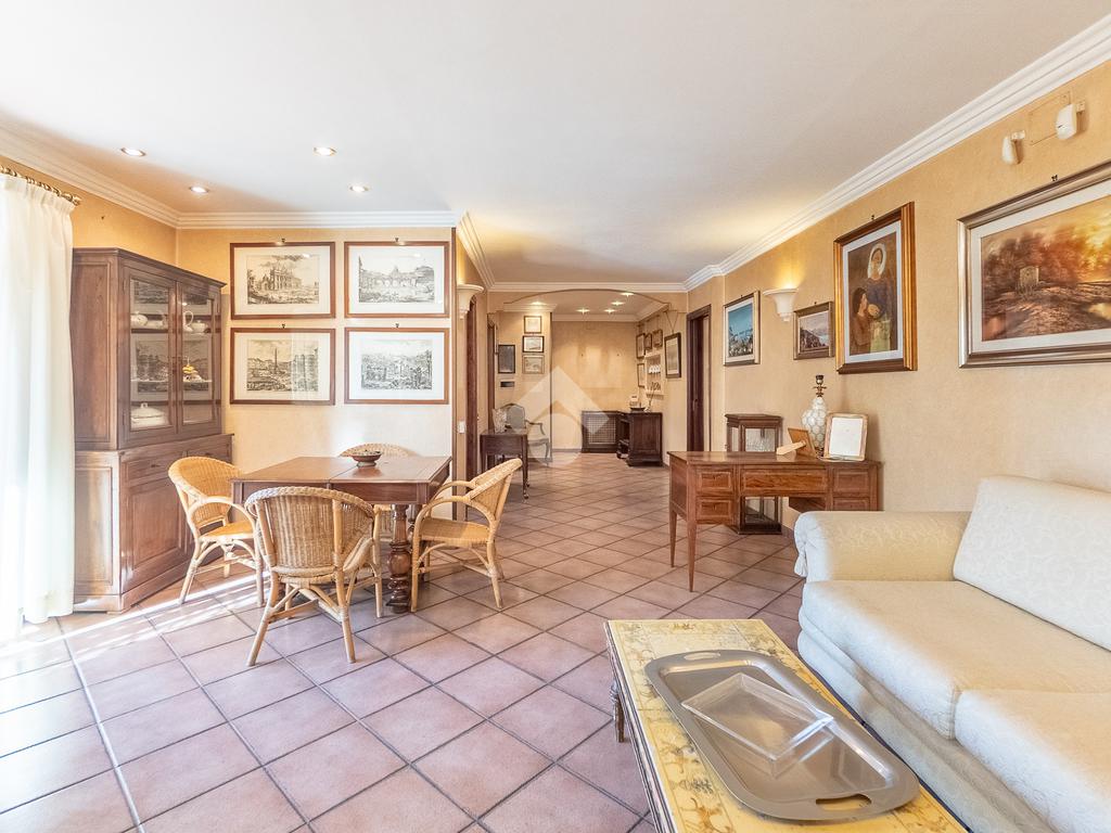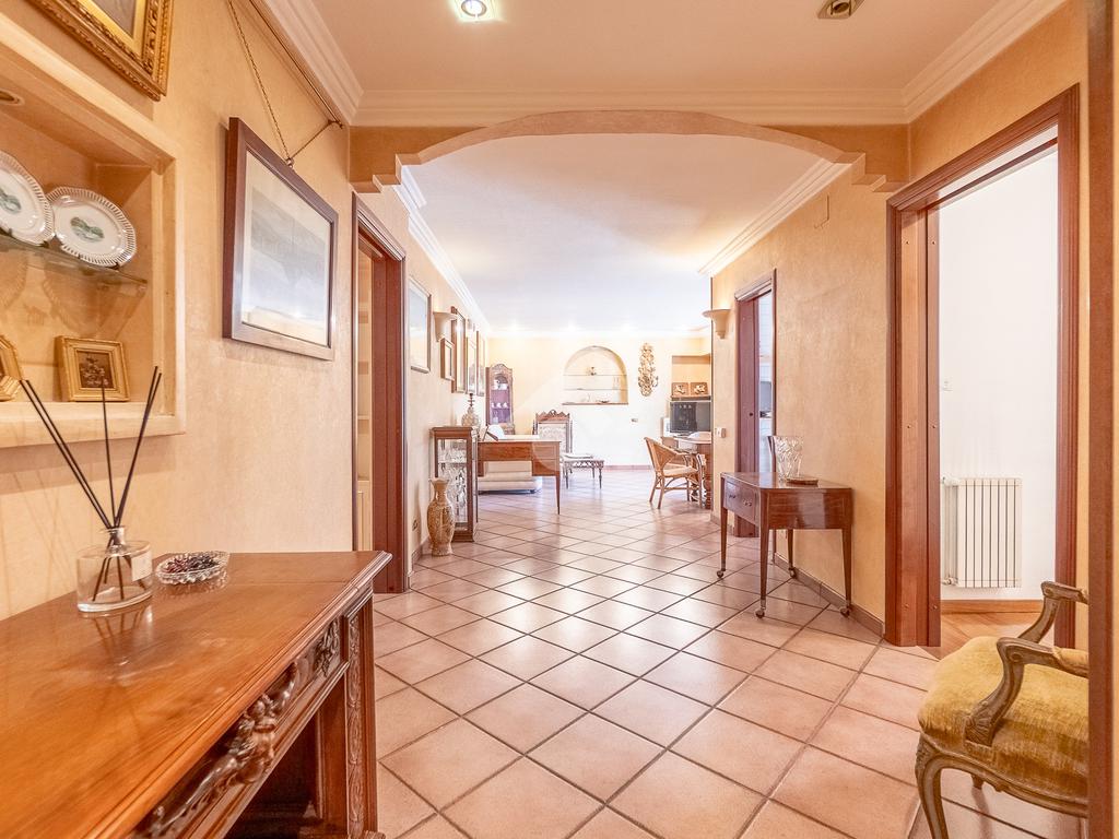Internamente l’abitazione è composta da ingresso, ampio soggiorno, cucina abitabile, due camere matrimoniali, studio, disimpegno con armadio a muro e due bagni, entrambi finestrati.