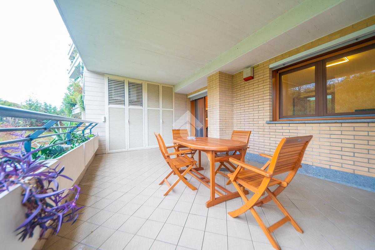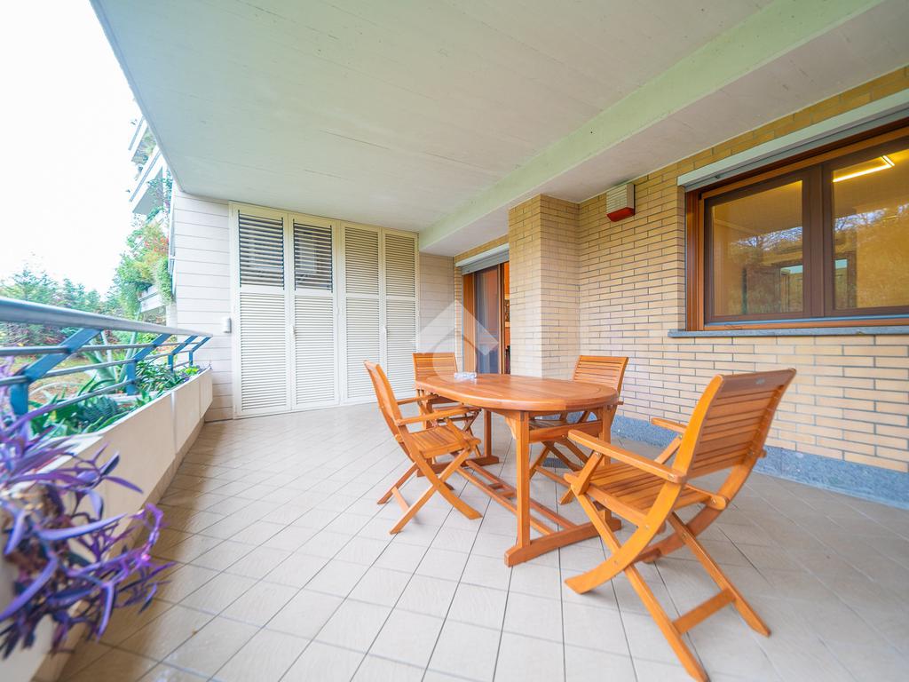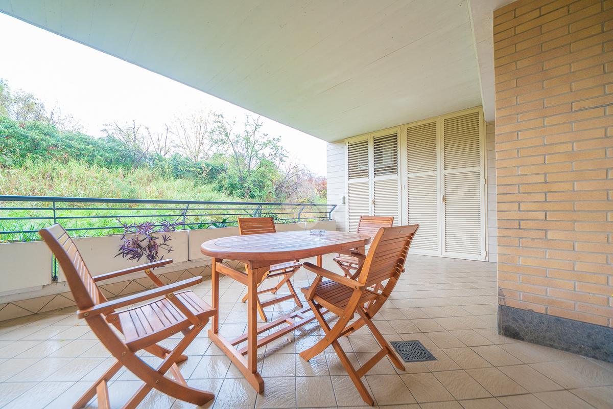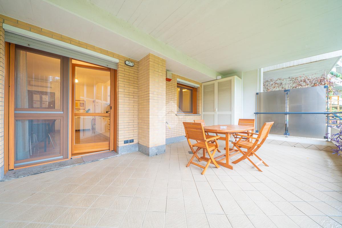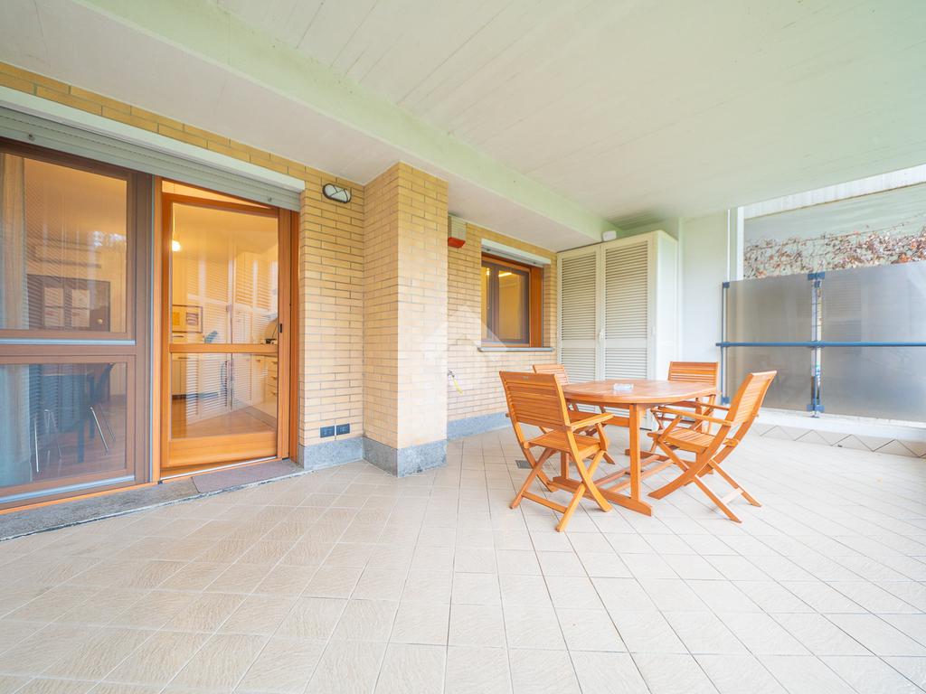 Il vero punto di forza della soluzione è il grande terrazzo con affaccio nel verde, un vero e proprio prolungamento della zona living: perfetto per cene all’aperto, momenti di relax e per chi desidera uno spazio esterno riservato e vivibile tutto l’anno