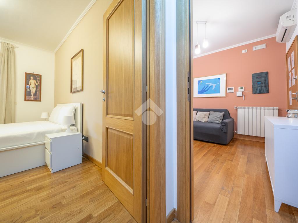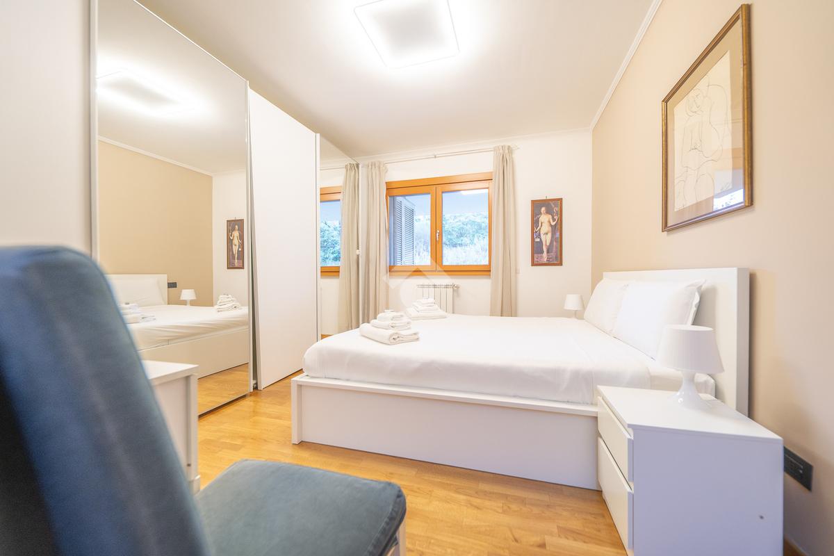 L’immobile si presenta in ottimo stato, con pavimentazione in parquet, infissi in legno doppio vetro, grate di sicurezza, allarme perimetrale, porta blindata, videocitofono e condizionatori in tutti gli ambienti.