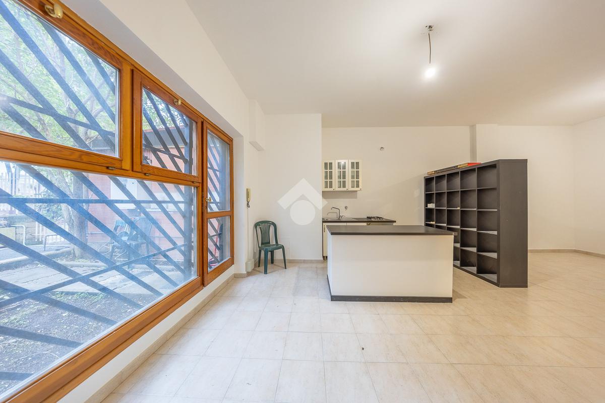 L'immobile, situato al piano terra, si trova all’interno di una palazzina in cortina degli anni ’70 circa di quattro piani.