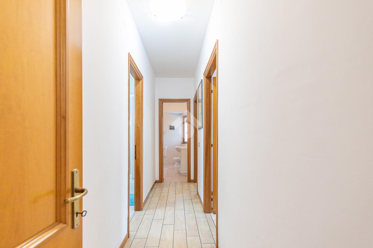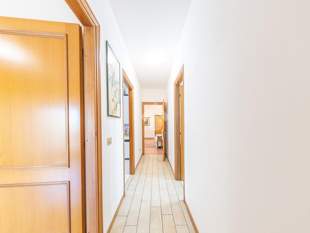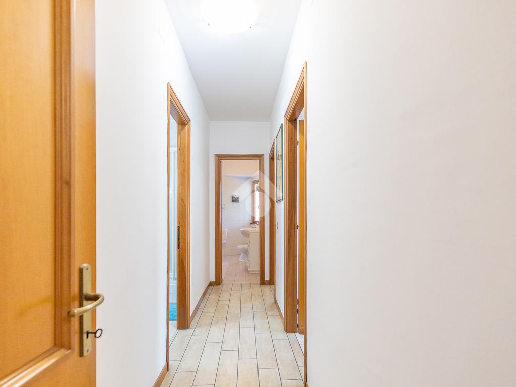L’appartamento è composto da ingresso, ampio soggiorno, cucina abitabile, due camere matrimoniali e doppi servizi.