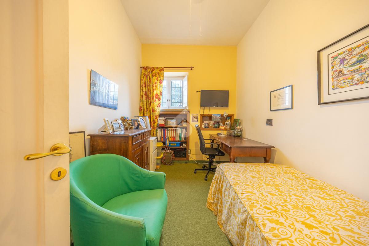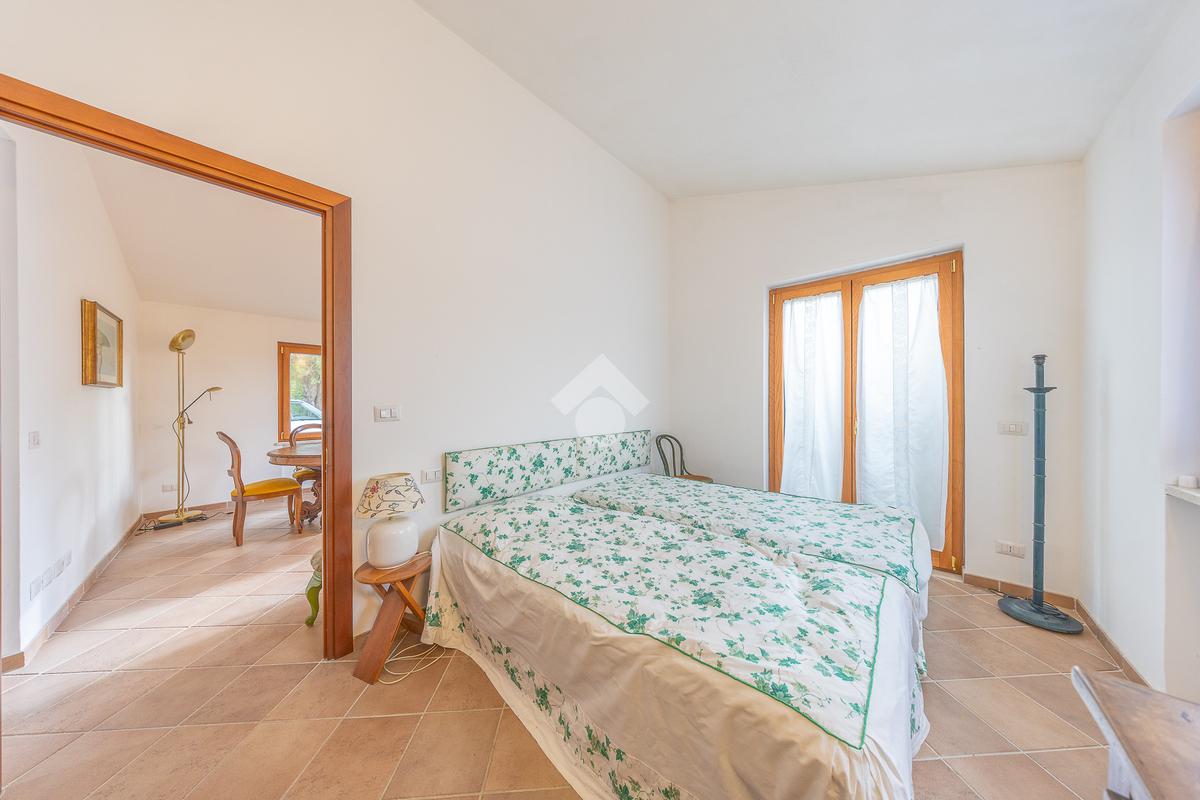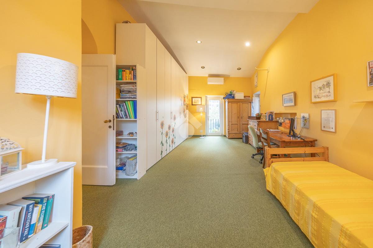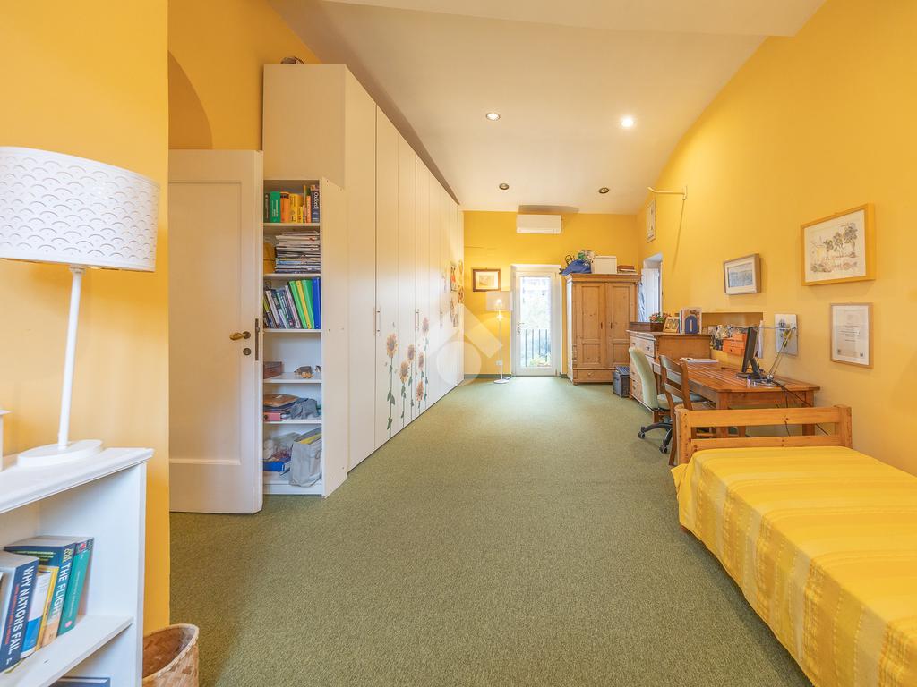 La zona notte comprende una suite padronale con cabina armadio, tre camere per gli ospiti e due servizi. Un balcone affaccia sul giardino.