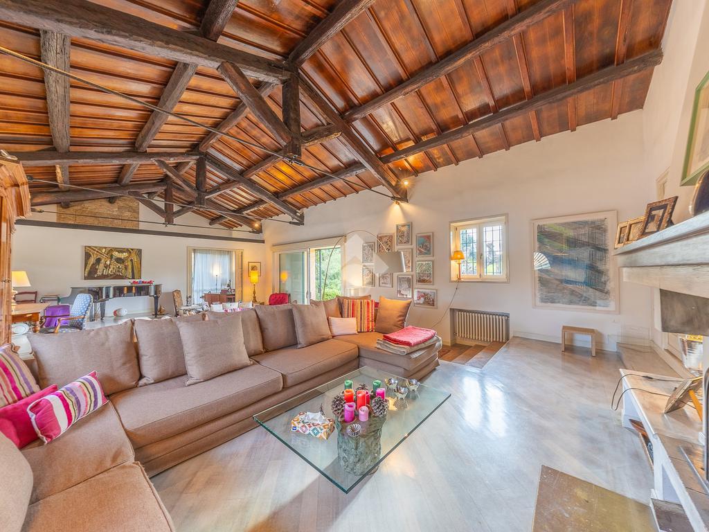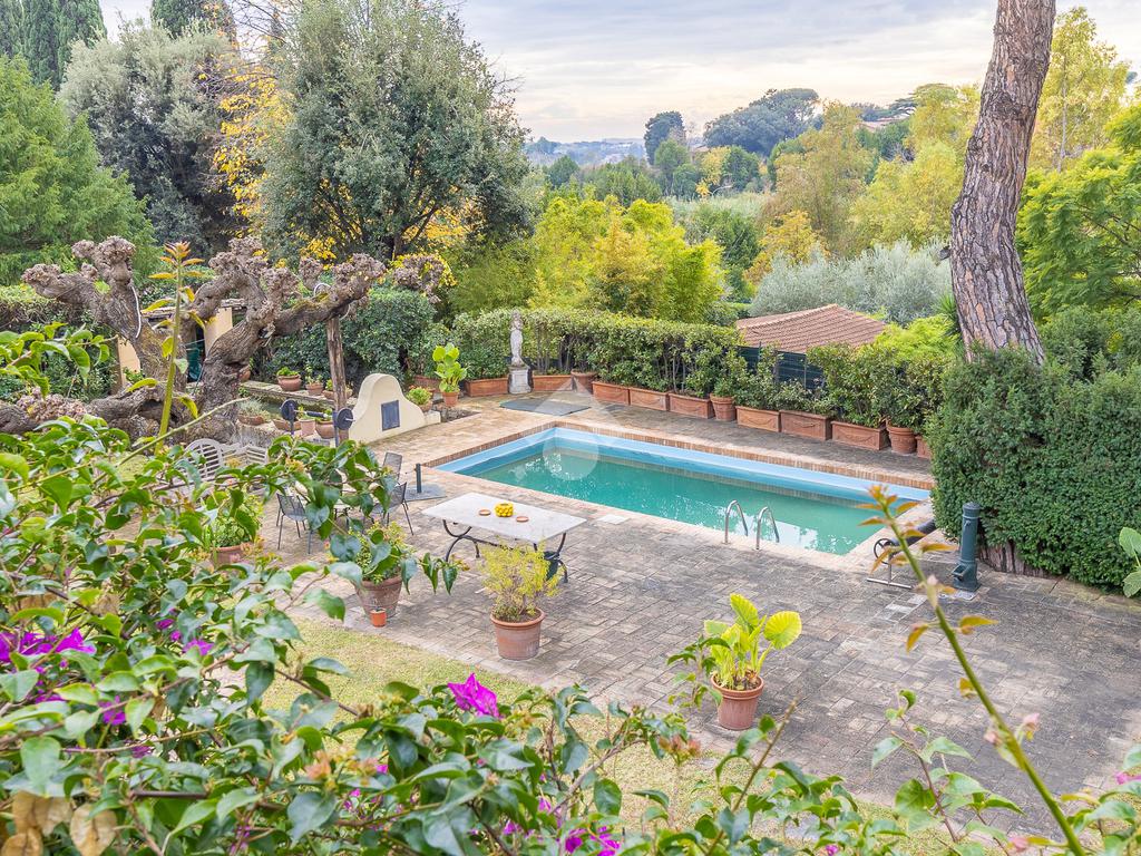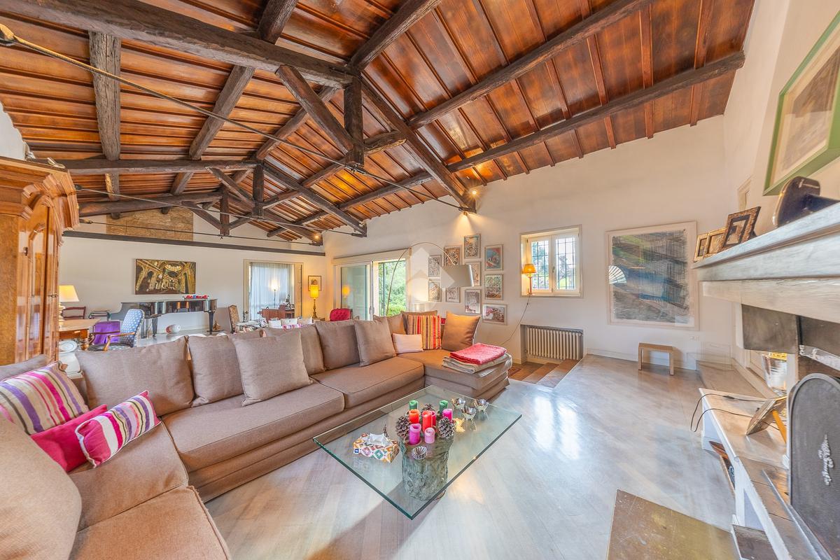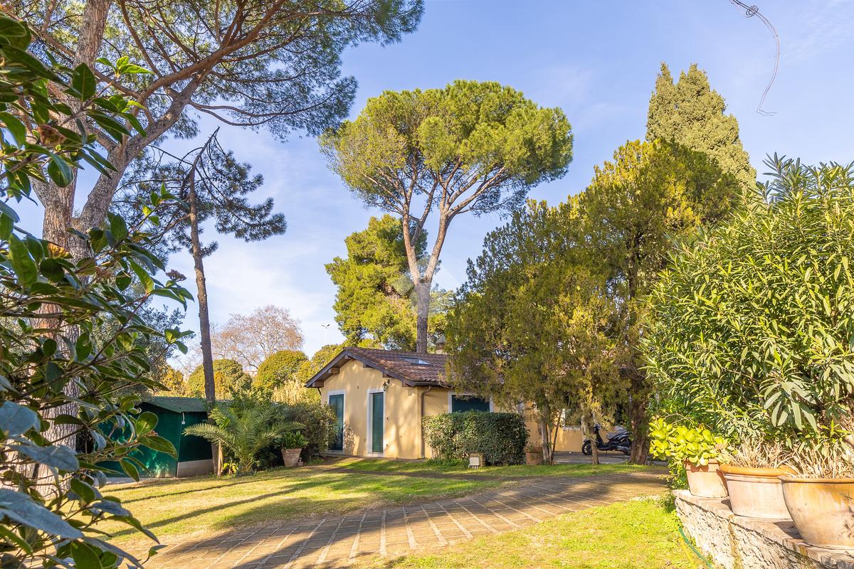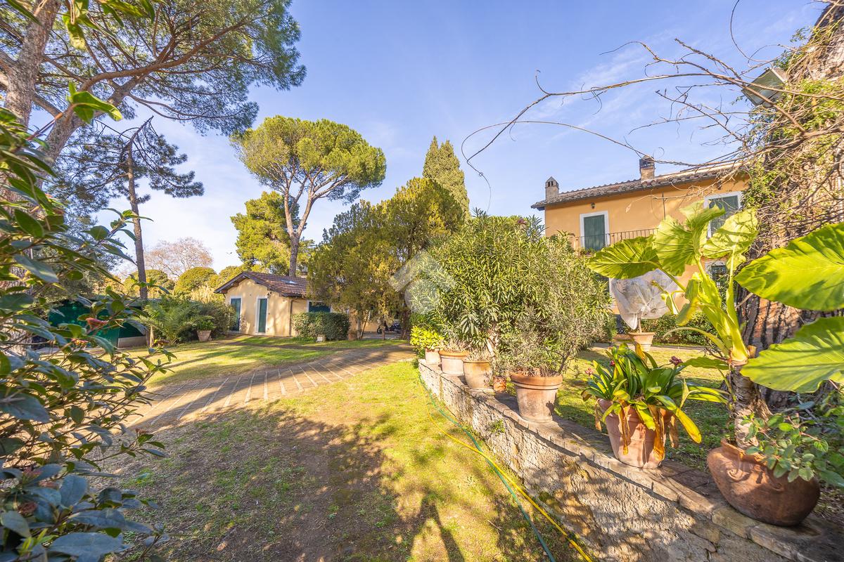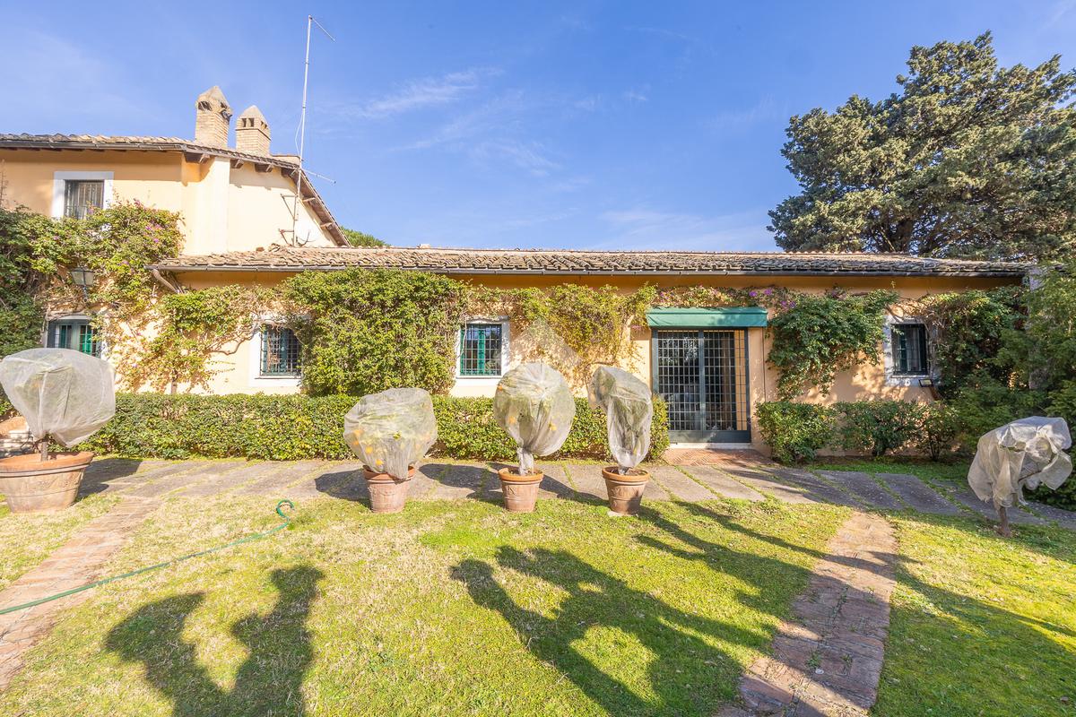 In uno dei tratti più riservati e prestigiosi di Via Aurelia Antica, proponiamo in vendita una villa immersa nel verde.
