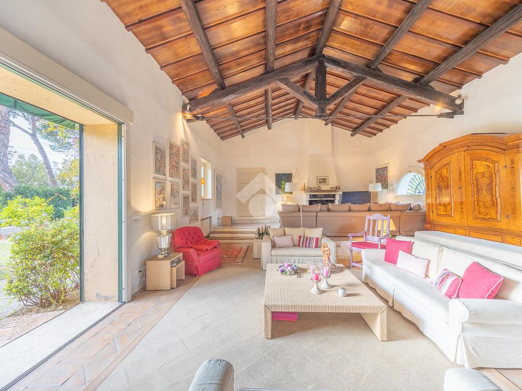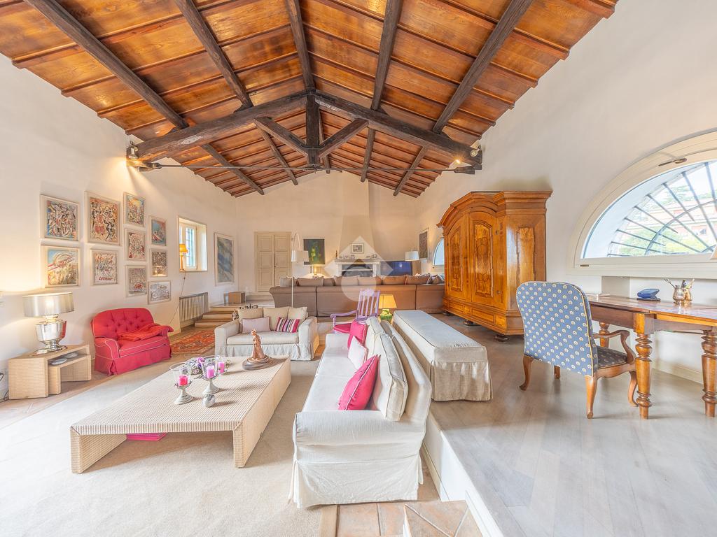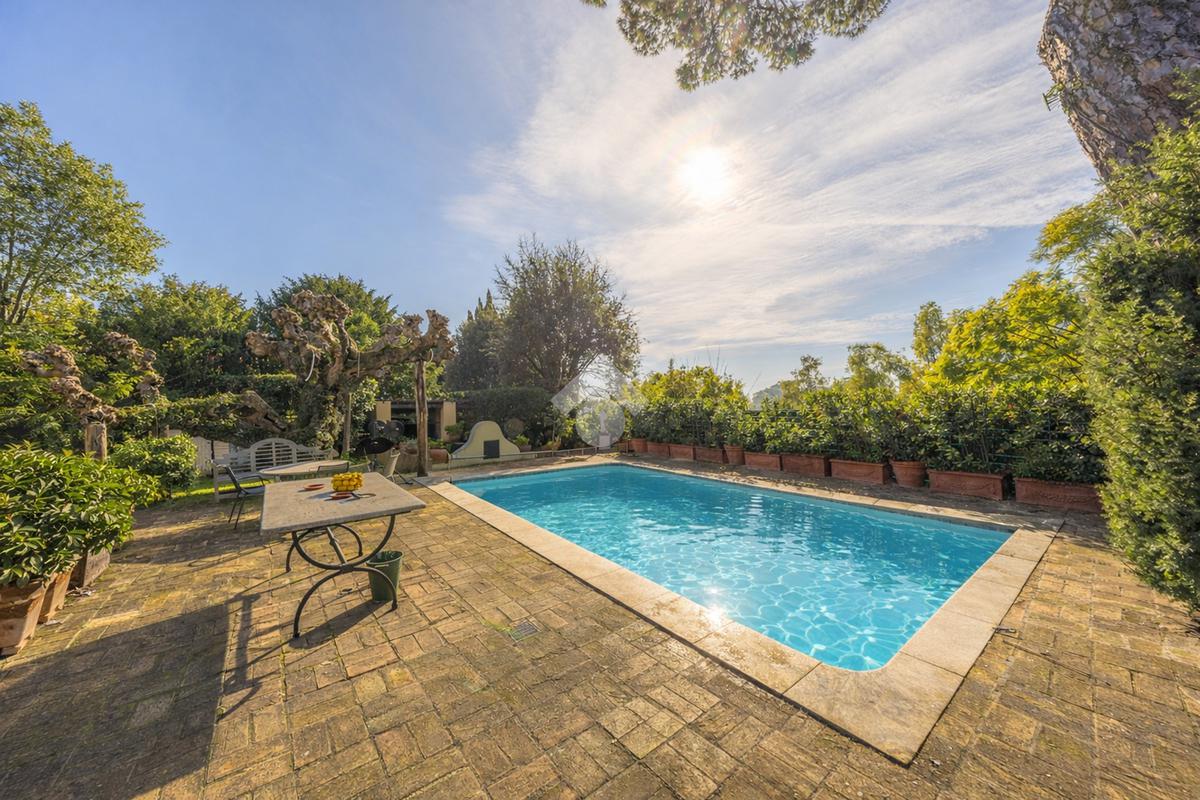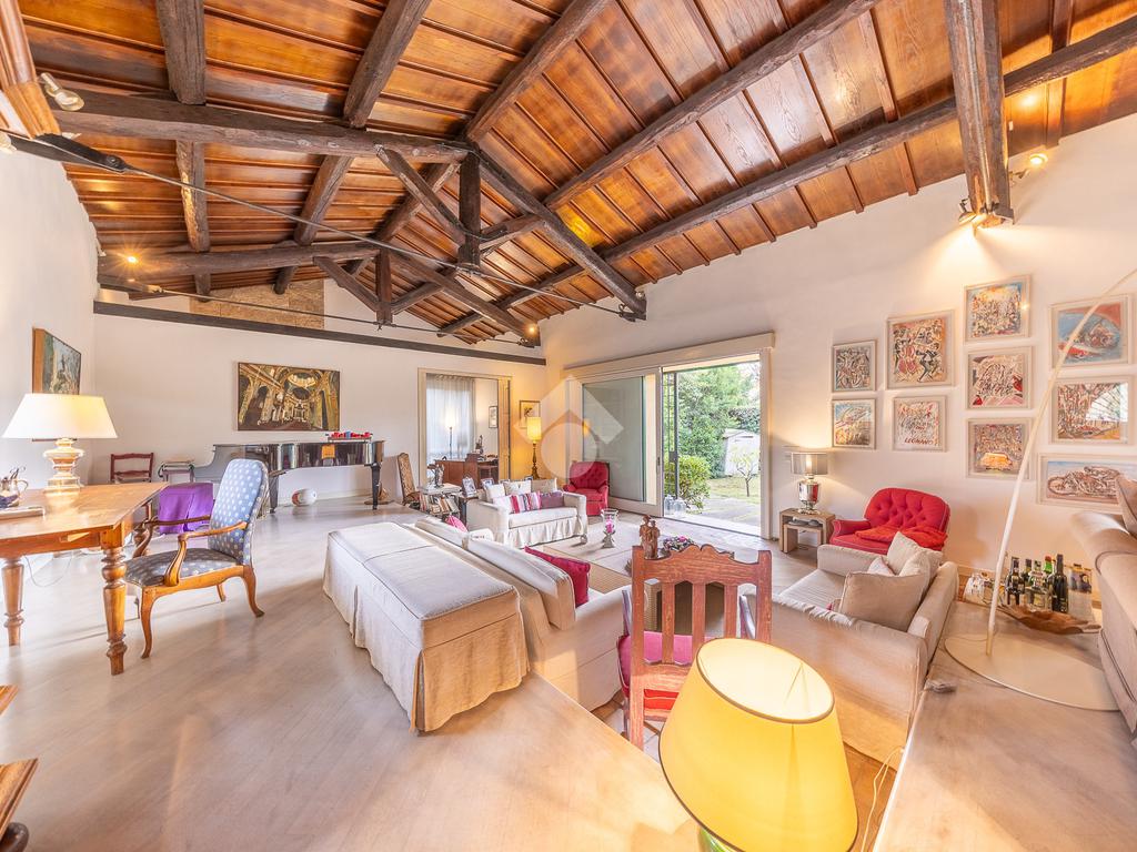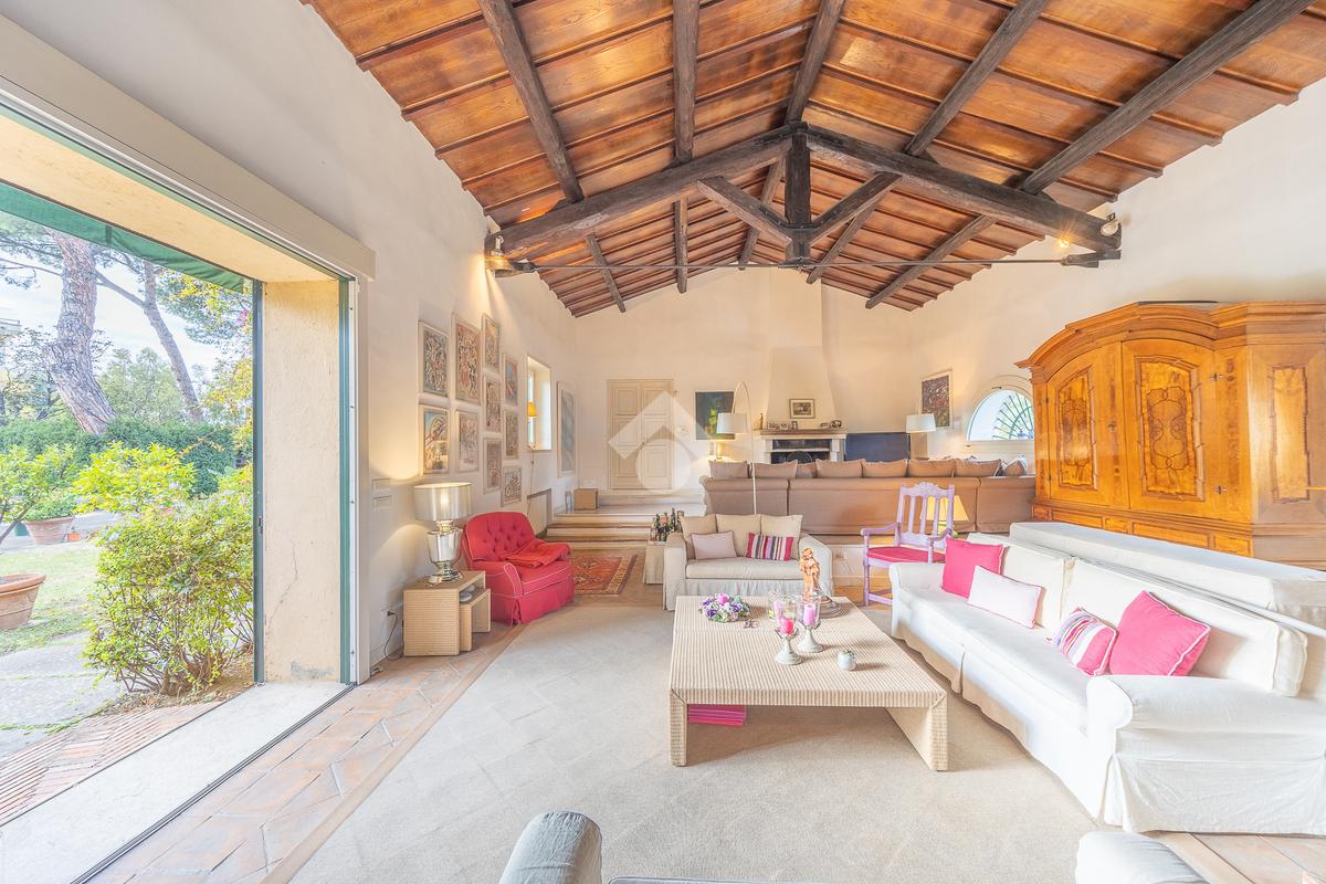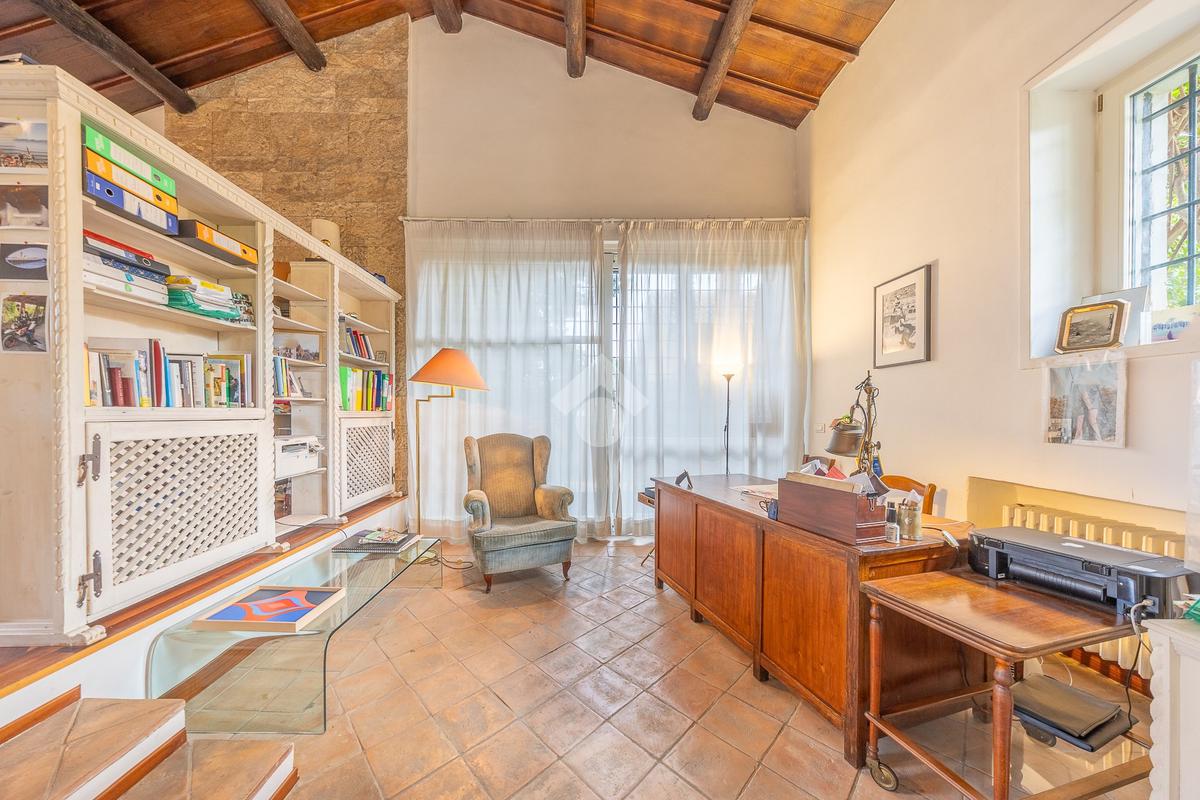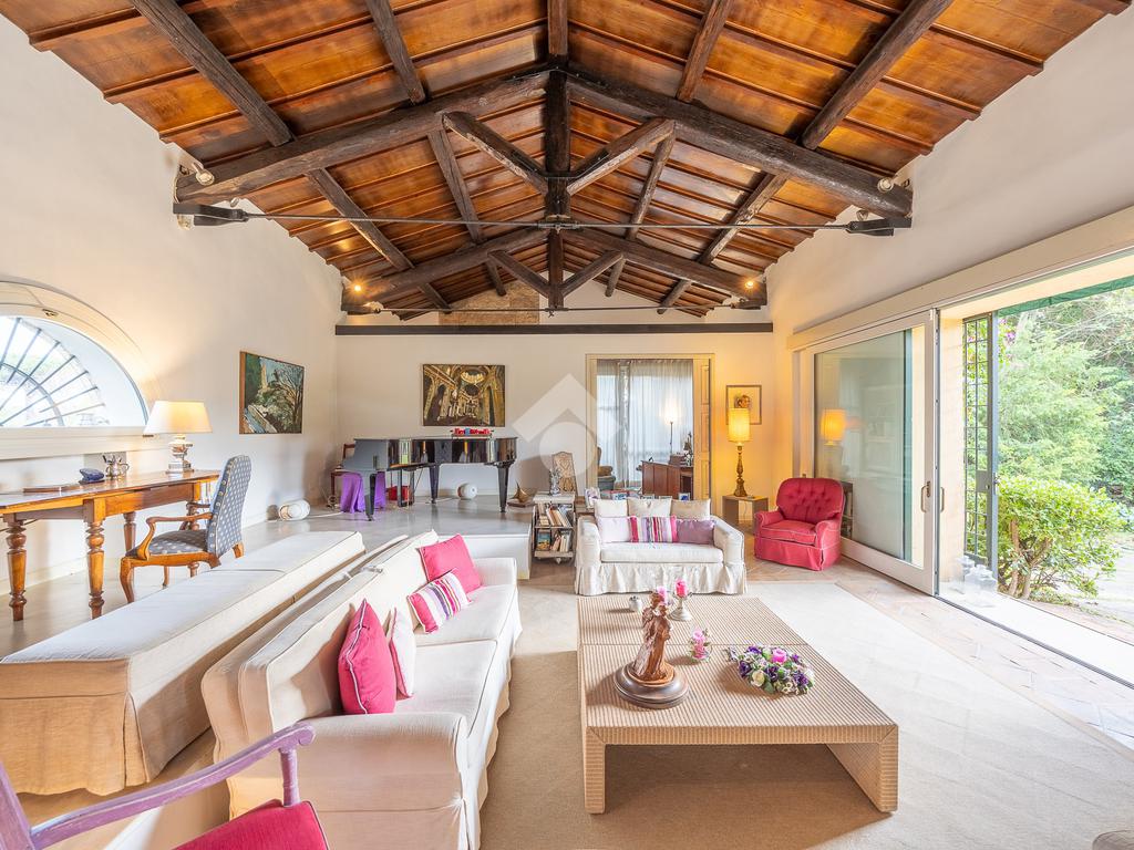 In uno dei tratti più riservati e prestigiosi di Via Aurelia Antica, proponiamo in vendita una villa immersa nel verde.