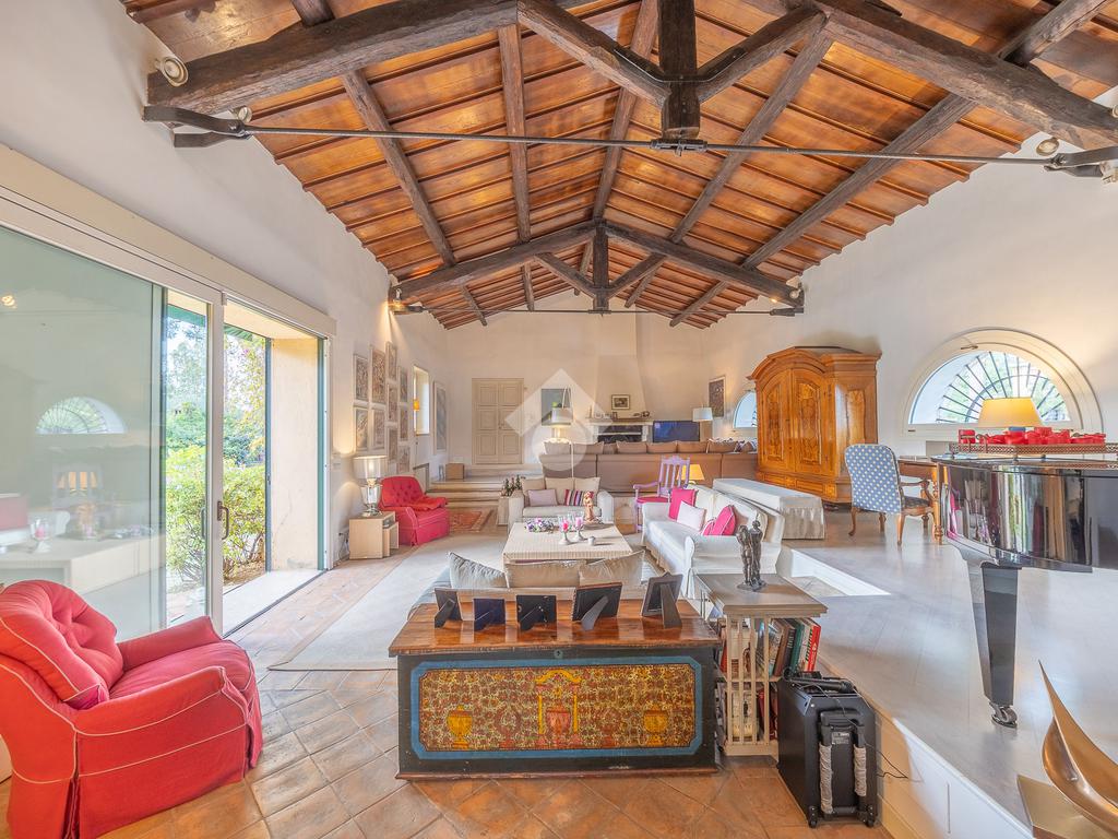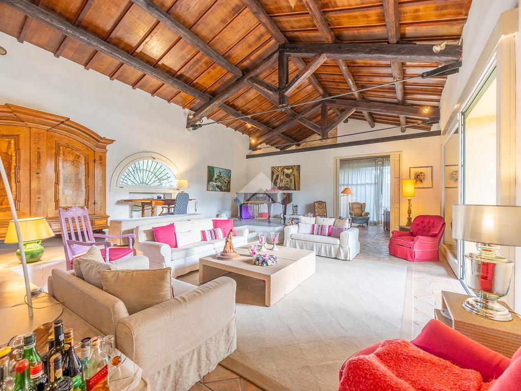 La proprietà dispone di irrigazione automatica, illuminazione esterna, piscina privata e sistema di sicurezza con allarme e videosorveglianza. Completano la tenuta una villa per il custode di circa 60 mq, una dépendance di 47 mq, posti auto e locale tecnico, rendendo la residenza una soluzione di alto livello.